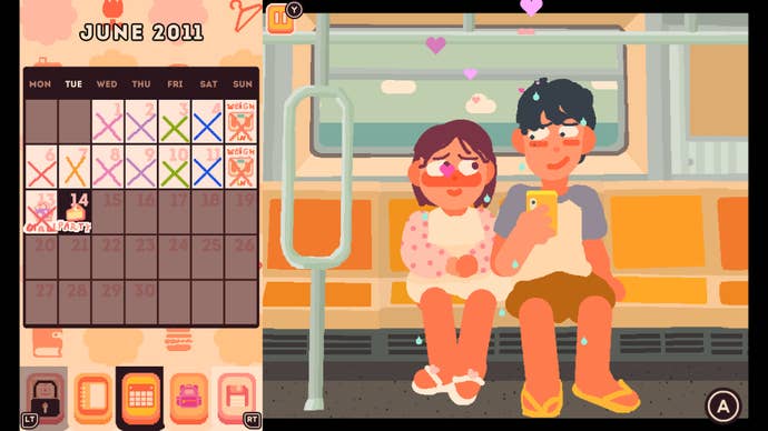 Consume Me is a semi-autobiographical work from co-designer Jenny Jiao Hsia that deals openly and honestly with some pretty tough themes, including dieting, disordered eating, and fatphobia. That might sound like a difficult sell, but Jiao Hsia's slice-of-life adventure adopts a format that's immediately, winningly approachable. This is a cheery, pastel-hued phantasmagoria of hyper-kinetic split-screen cutscenes, slapstick WarioWare-style minigames, and time management challenges that ("Just think of it like a video game!") cleverly uses the language of the medium - its penchant for repetition and routine, its love of ever-escalating pressures - to mimic Jenny's daily struggles.