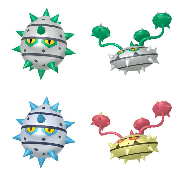 There's only one real change in shiny Ferroseed, is a really cool one. It swaps its greens for a gorgeous shade of steely blue (OK, its greys are slightly lighter, but it's subtle).