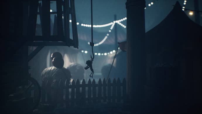 There's a moment around Little Nightmares 3's midpoint when, following a tepid first half so safe it often feels like a tribute act, new series developer Supermassive finally seems to hit its stride. Slowly the hum of a mysterious subterranean void gives way to rain-lashed walkways as our diminutive protagonists brave the exterior of some vast, heaving machine. Then the reveal of the grand Carnevale, its sprawl of big top tents and twinkling lights, its parade of grotesque fairground thrill seekers, all perfectly framed. Little Nightmares 3's often slavish adherence to the past means it's burdened with far too much frustrating legacy faff, but even so, it's hard not to get lost in the spectacle of it all.