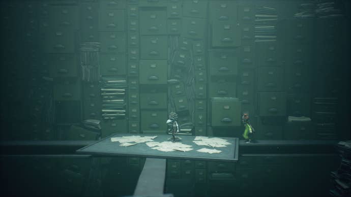 It's just one of several areas where it feels like Little Nightmares 3 doesn't quite hit the mark, even as Supermassive works to a familiar template. Progress still involves a blend of 2.5D platforming, puzzling, stealth, and frantic escape as each world's primary antagonist makes themselves known. But in terms of moment-by-moment action it often feels a little flat. There's a lot of walking through empty, nondescript rooms, especially in the game's rather rote first half, and when the set-pieces do come into play, they're too often predictable and pedestrian in design. You'll stealth across the foreground to avoid sightlines, you'll leap and slide as monsters suddenly give chase, but rarely do these sequences capture the imaginative choreography, the shivering menace and oppressive tension, of earlier games. Puzzles are particularly disappointing, distilling the series' formula down to perfunctory busywork – block pushing, lever cranking – rather than anything more involved.