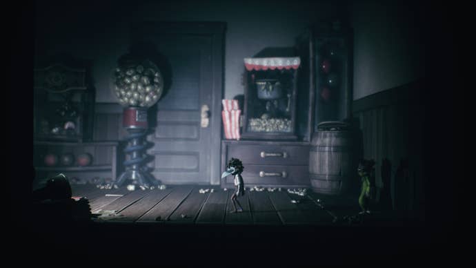 Eventually, around the time those big top tents and glimmering Ferris wheel lights come into view, Little Nightmares 3 blossoms into a series of imaginative, confidently choreographed sequences that - while never quite escaping those fundamental frustrations - help carry it through to a satisfying conclusion. Its final two chapters are especially vividly realised, exhibiting an energy and ambition less evident elsewhere. Perspective is used increasingly playfully, the cinematic camera frequently eschewing its traditional left-right march to lend the world a more tangible form – particularly as it delves in and out the final chapter's warren of interconnected hallways and rooms. It's here Little Nightmares 3 also finds a gimmick it can work with, making for a clever series of final puzzles that – along with some impressively staged set-pieces and a brilliant bit of monster design – end things on a high.