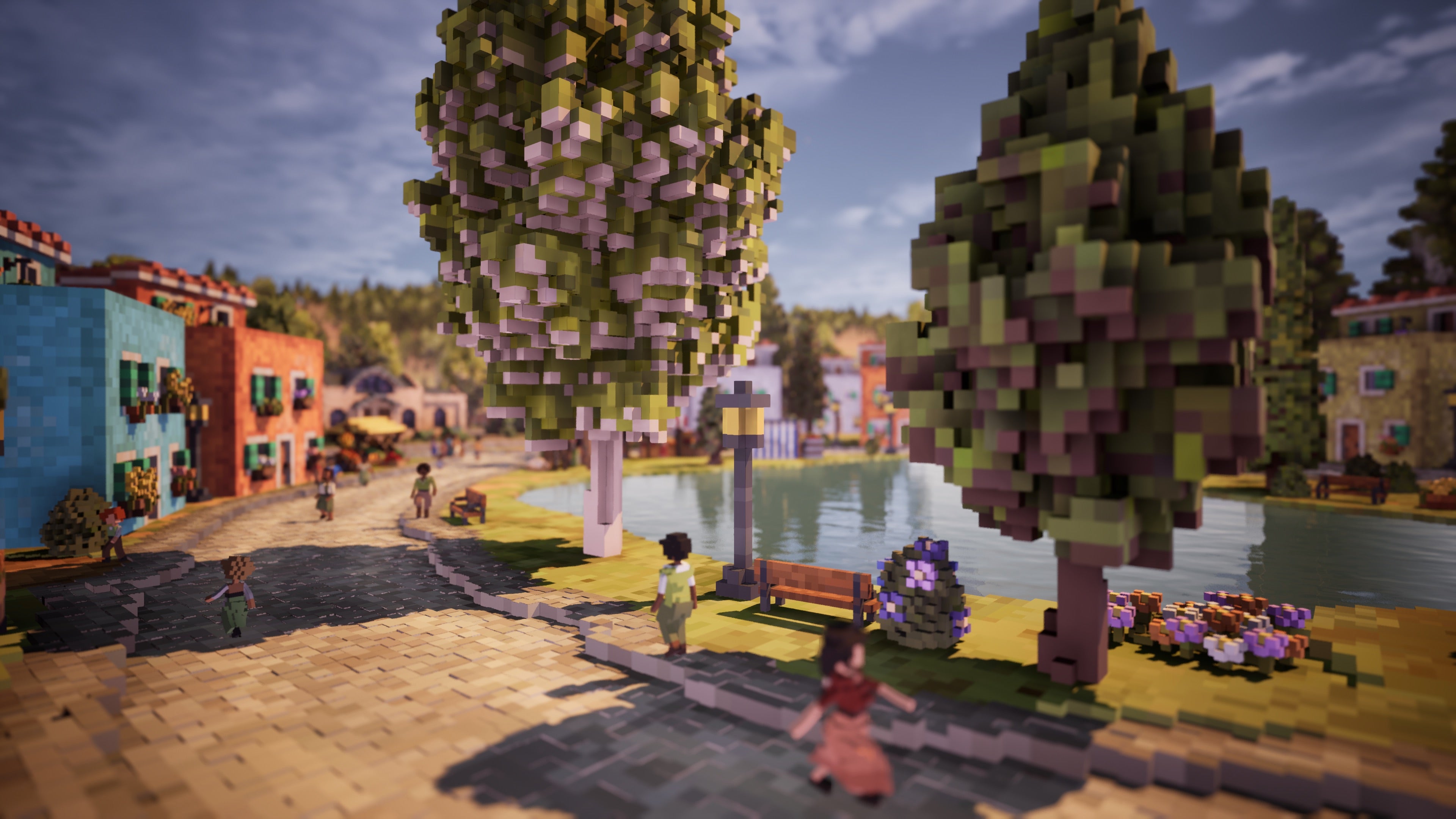 Kudos, too, for a construction tool kit that manages to feel creatively flexible without ever being overwhelming. Sure, I'm already assembling a mental wishlist of additions I'd love to see - a path smoothing tool to counter my wobbly mouse hand, for instance - but this is still in early access development, after all. And honestly, I've been having a genuinely lovely time - to the tune of far too many hours, frankly - building my beautiful boxy dioramas, lost in a blissful daze of quaint market squares, picturesque parks around crystalline lakes, and palatial residences high on hills. And the well-featured camera tool has sucked up a decent amount of my time too.