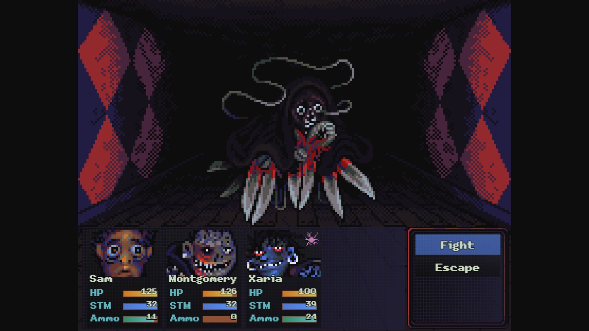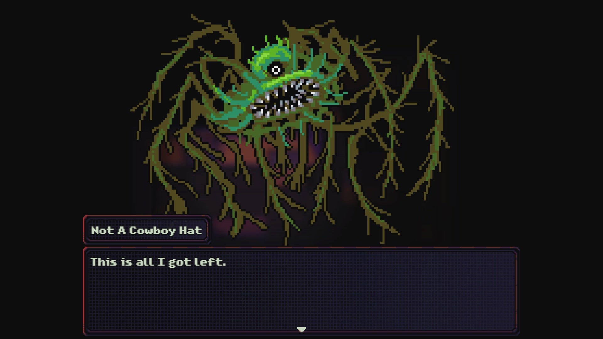 Despite its jovially cartoonish veneer, Look Outside is a wonderfully, surprisingly grim thing; a smothering, gooey miasma of seeping innards and gut-tightening existential dread that also happens to be a sly, silly, and relentlessly oddball adventure – all the while walking an impressively assured tightrope between humour and horror. Tonally, it's very much its own thing, but if I had to make comparisons, I'd say its combination of oozing retro dread and top-down, turn-based battling feels something like the lovechild of Jasper Byrne's cult survival horror hit Lone Survivor and Toby Fox's ode to old-school JRPGs, Undertale.