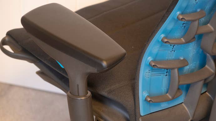 The back's unique design also contributes, with a central 'spine' attached to 'ribs' that expand or contract to ensure you're always being supported, even if you're sitting unevenly. The chair only reaches to the middle back, so I was initially worried about the lack of head and neck support - especially on a chair at this price point. However, this really hasn't been an issue, and the better posture I seem to be adopting when sitting in the chair has meant that I don't need something to lean back on. I do miss reclining and sinking back in my chair when I'm taking a moment to think about something or reacting to an unexpected kill in CSGO, but if this is better for me then I don't really mind changing my habits. The shorter height also makes this chair cheaper, lighter and easier to fit under a standing desk, so there's some nice synergy with the Nevi here.