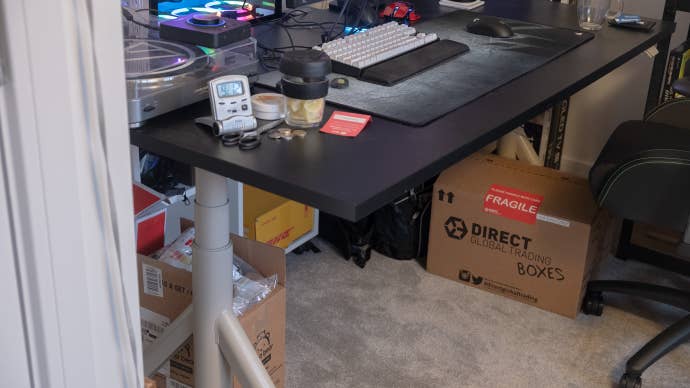 I've got to shout out the control system too, which is simple but effective. The inclusion of a collision sensor also means that the desk stops if it hits a knee or a bit of furniture, which means the only thing you really have to worry about are cables getting caught - I did ruin a few DisplayPort cables this way, so it's worth keeping your PC on the desk itself so that the only thing you have to watch for are the power cables running from the desk to the wall.