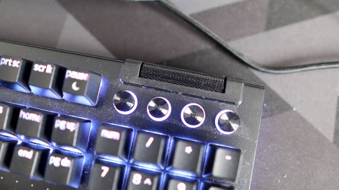 It adds some small but noteworthy improvements to its predecessor that help to make it a more rounded product, such as the presence of dedicated macro keys on the left hand side - a rarity at any price point - and a dedicated volume roller to go with the clever multi-function dial and multimedia controls that already adorn the top corners of the keyboard. They add even more keys to its already large full-size layout, and arguably make the BlackWidow V4 Pro one of the richest options in terms of functions available.