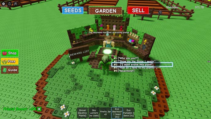 Each time you hand over a particular plant to level the seed up and unlock the next Seed Stage, you'll also receive a reward from a random assortment of items listed at the 'Reward List' sign next to the NPC. These include various gear items, eggs, and more, with the reward quality increasing as you move up the stages.