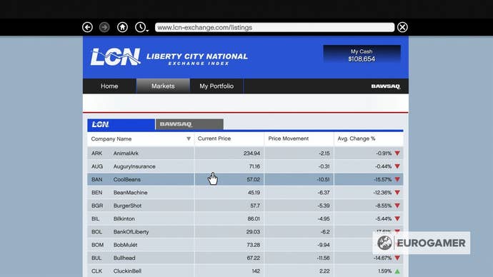 Now, we mention this because previously the BAWSAQ market value was determined by the actions and investments of every other player connected to the Social Club, meaning you really had to stay on your toes. At the time of writing, we believe that BAWSAQ could still be operating based on in-game player actions and investments while connected to the Internet, though we are working to confirm this information.