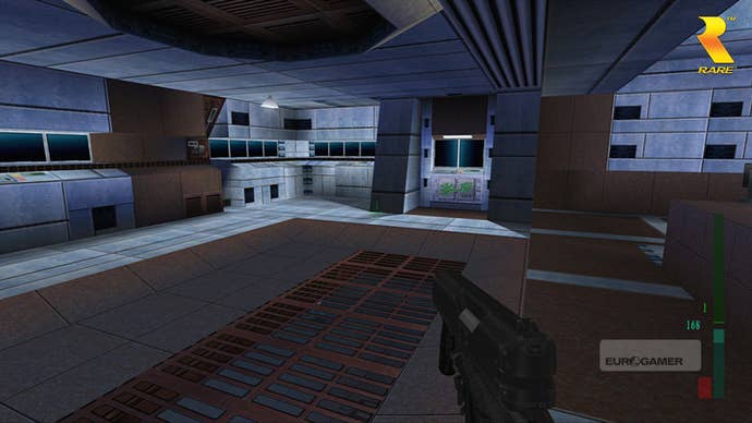 Faces have been given a once-over - Joanna's new mug is a strange cross between Sandra Bullock and, oh, let's say Michael Jackson - but the new character models have been welded to the old animations, which means guards role in and out of view with the same gymnastic hilarity that they used to, and you can still shoot guns out of peoples' hands if you're feeling spiffy. All of which means that Perfect Dark XBLA retains the look of an N64 game, even if it's something Nintendo's old console would be comprehensively incapable of running.