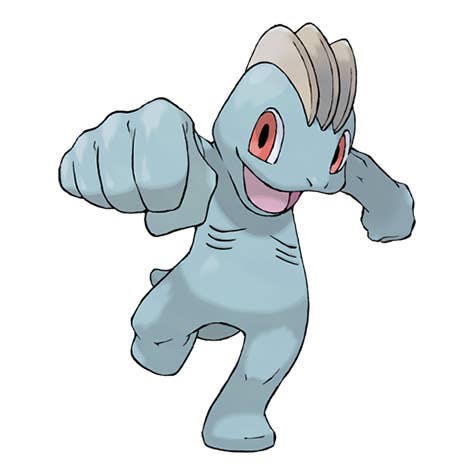 - Machoke: 'Its muscular body is so powerful, it must wear a power-save belt to be able to regulate its motions. Its formidable body never gets tired. It helps people by doing work such as the moving of heavy goods.'