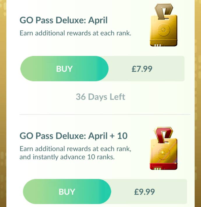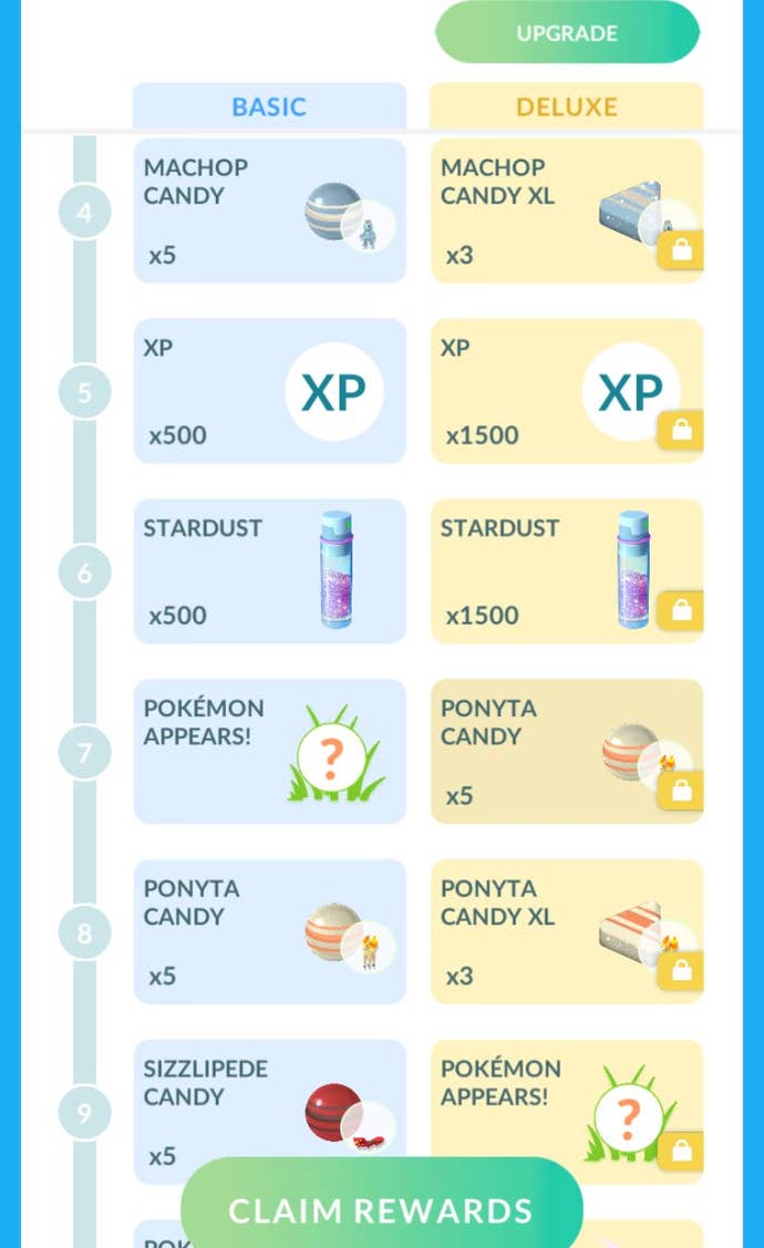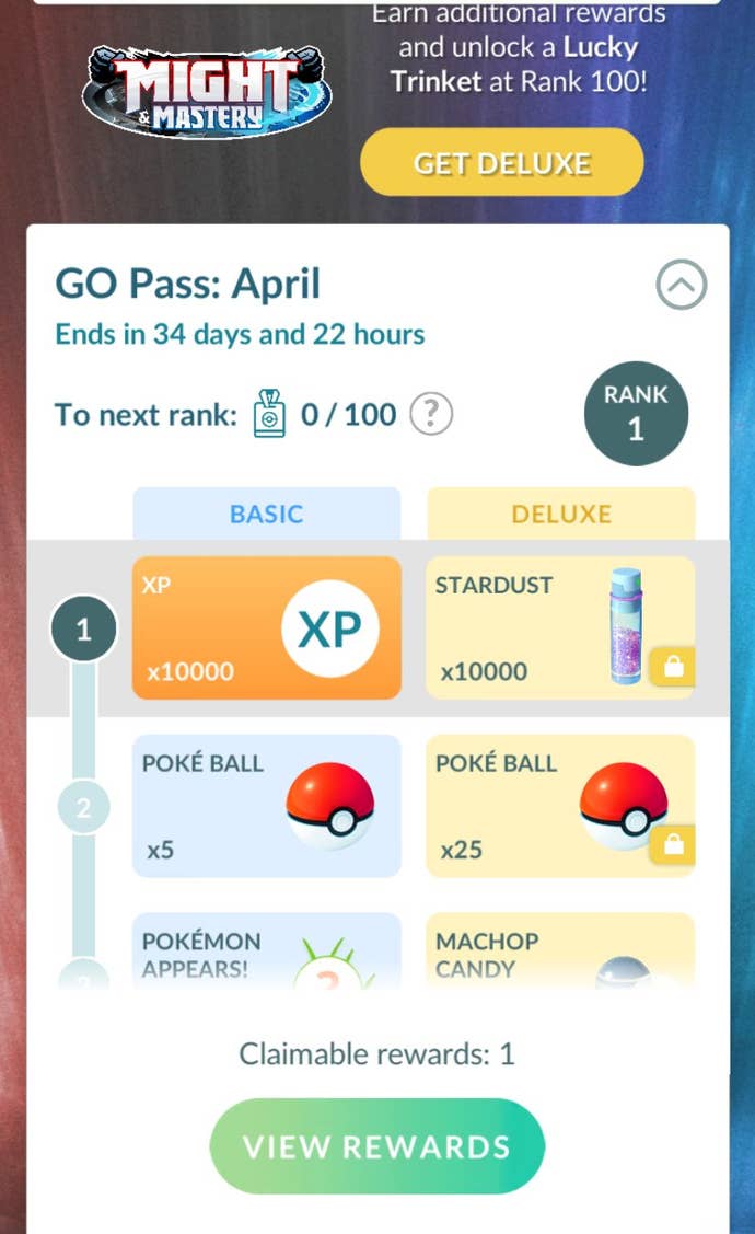 Go Pass is Pokémon Go's battle pass. (We knew it would come eventually). It's divided into two tracks - free and pay-to-play, which is called Go Pass Deluxe. The difference between the two? Well Go Pass Deluxe has better rewards of course!