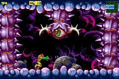 Often, when the full light of international fame falls on a rising young starlet, they'll go to great lengths to cover up their earlier works. Not our Samus, though, oh no. She's a Nintendo girl through and through, which essentially means that she's perfectly happy to dust down any two-bit game she starred in when she was young and needed the money as long as there's a quick buck to be made with a GBA re-release. So then, here we are, with Samus' very first adventure - right from back when her curvy bits were rattling around inside that big suit (probably) - making the leap over to the Game Boy Advance.