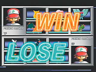 Of course, the meat of the game is the turn-based fighting. Now this is something you are either going to love or hate, but unfortunately it may take a while for you to really start to hate it. The Stadium games are extremely repetitive, asking you to basically take various Pokemon through fights against other Pokemon with different strengths and weaknesses, all in pursuit of various cups, prizes and the like. Often a cup will consist of 32 battles at least, and the competition is ferocious. You will want to groom your Pokemon for quite a while in advance. The problem is quite simply that the repetition doesn't really yield any particular reward. For Pokemon fans, maybe some new cup or trophy would be an incentive, but personally I wanted the equivalent of cold, hard cash. I wanted new toys, basically, and what I got after hours of clenched teeth and blasphemous outbursts was the ability to play one of the GameBoy games I didn't have at double its normal speed. To be fair, victory often does feel like something of an accomplishment, particularly when it's a big challenge like the game's Prime Cup, but by about the three-hundredth battle my patience was wearing awfully thin. The other annoying thing about battling is the commentator. He clearly has been afforded about two bytes of memory for both of his lines, the most common of which is "this Pokemon was badly injured". Thanks for the newsflash, brainiac! Apart from this travesty, which can thankfully be turned off, the game generally sounds okay, with booming sound effects for the various attacks.