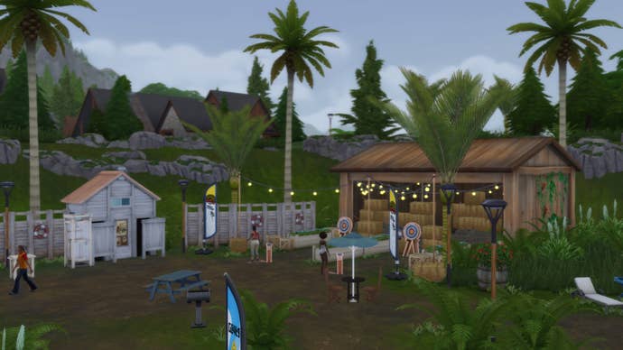 There's more to Getaways than that, though; it's possible to give Sims specific roles, with each group following their own itinerary concurrently, and Getaways can be assigned up to five "rules" from a broad list. So Hardcode mode will cause your Sims' needs to diminish more quickly - handy if you want to add a bit of realism to your survivalist pursuits, for instance - or you might want your Sims' friendships to fade faster while vacationing together for true holiday authenticity. There's even a No Strings Attached rule if you want what happens at a Getaway to stay at the Getaway. I've not played around with everything yet, but the system is flexible enough - particularly in conjunction with the new custom venues - that it can be used to build anything where some sort of scheduled autononmy might be handy. You could set up a recurring spin class populated by instructors and fellow spinners, for instance, and I'm pretty sure one of EA's included pre-sets is essentially a competitive sex party.